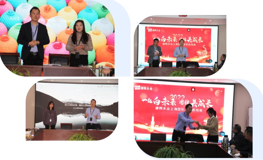 在啟動(dòng)交流會(huì)上,康輝木業(yè)董事長(zhǎng)沈總率先致歡迎辭。對(duì)上海團(tuán)隊(duì)送上新春?jiǎn)柡蚝兔篮米T。回顧企業(yè)的發(fā)展歷史,從沿承1898年的沈氏木藝文化成立康輝木業(yè),打造康輝地板、康輝木門、康輝木飾面等多品牌發(fā)展,到打造“多渠道、密集型”的銷售體系,再到進(jìn)軍全屋大家居領(lǐng)域……康輝在一步一個(gè)腳印中發(fā)展壯大。在康輝蓬勃發(fā)展的歷史節(jié)點(diǎn),沈總鼓勵(lì)大家要沉下心專注當(dāng)下,腳踏實(shí)地不好高騖遠(yuǎn),跟隨企業(yè)發(fā)展的腳步,發(fā)揮品牌輻射影響力、提升門店經(jīng)營(yíng)管理效率、拓展獲客渠道等出發(fā)點(diǎn),全面提升對(duì)門店以及各區(qū)域團(tuán)隊(duì)的賦能力度,團(tuán)隊(duì)與總部共同攜手并肩2022年,創(chuàng)造輝煌新篇章!