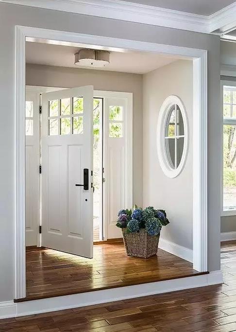 中色地板+淺色木門,這樣的搭配非常之多,也很普遍,一些現(xiàn)代風(fēng)格,混搭,田園等都有這樣的搭配法。