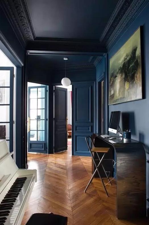 中色地板相對來說使用頻率非常之高,屬于比較保險(xiǎn)的顏色。中色地板+深色木門的搭配方式也非常常見,很多風(fēng)格中都有應(yīng)用。