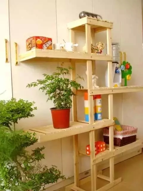將裝修后剩余地板中的“大料”,進行簡單地拼接,就可以制成一個收納架,放置大型鍋具、桶裝油、袋裝大米等,質(zhì)量好的地板抗壓性強,用其制成的收納柜使用性能較好。